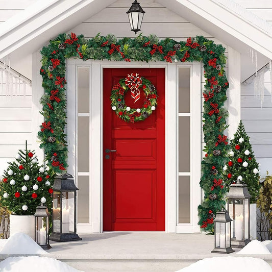 Ghirlanda de Crăciun Imperială, decorată cu Fundițe conuri si merișoar, 270cm
