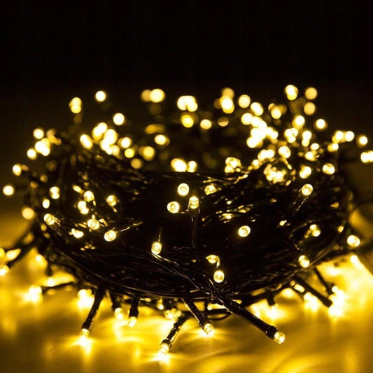 Instalație de Crăciun Solara, 32 metri, 300LED-uri, 8 jocuri de lumini, Lumina Alb Cald