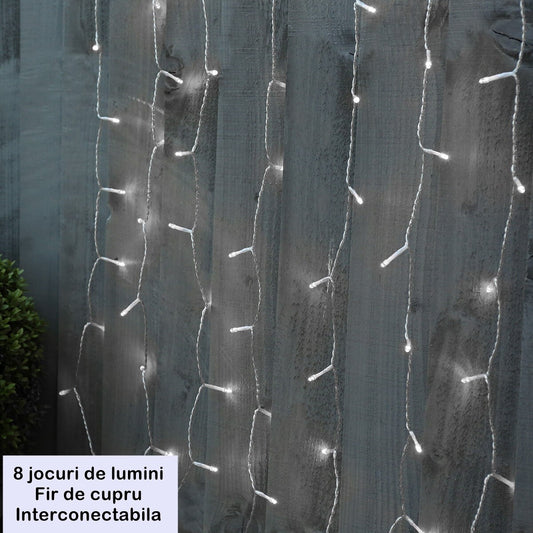 Instaltie de Crăciun tip Perdea, 3m x 3m, 320 LED-uri, 8 jocuri de lumini, INTERCONECTABILA, Lumina Alb Rece