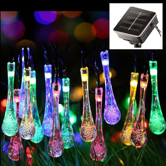 Instalație Solara, 6 m , 28 LED-uri Ornament tip picatura de apa , Lumina Multicolora