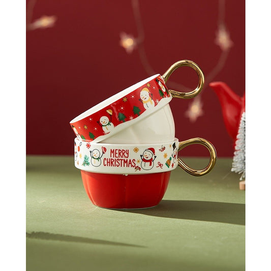 Set de Ceai, Ceainic 450 ml, 2 Căni 250 ml, Model Om de Zăpadă