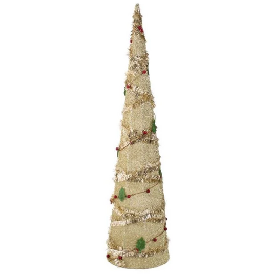 Brad Conic Decorativ de Craciun cu Beteala Sampanie & 30 de LED-uri Ø21x80cm