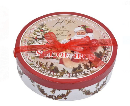 Set Farfurii de Craciun din Portelan cu Model Vintage Mos Craciun Ø19cm - 4buc