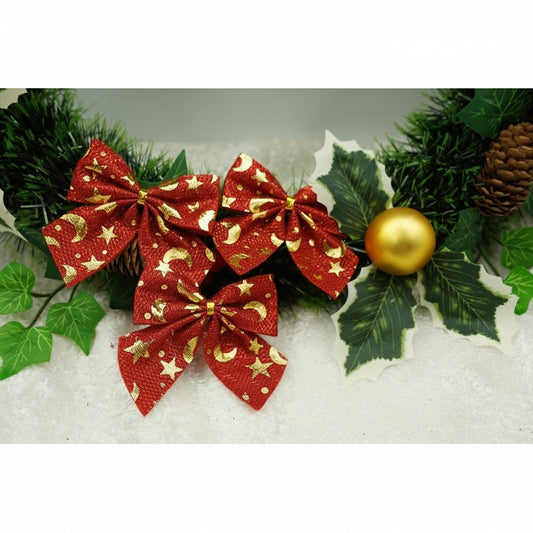 Preț Redus!Set 6 Fundițe pentru brad roșii 7x8cm
