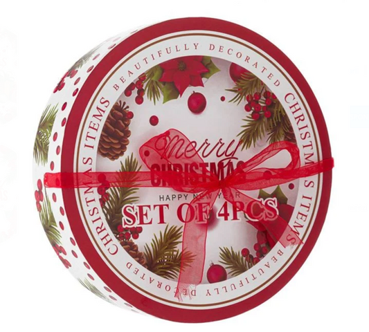 Set Farfurii de Craciun din Portelan cu Modele "Merry Christmas" pentru Fructe Ø19cm - 4buc