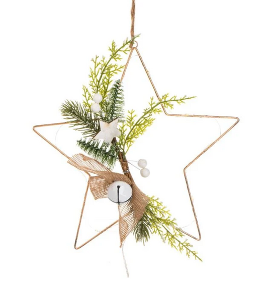 Stea Decorativa de Craciun Metalica cu Ramuri & Lumina 30x32cm
