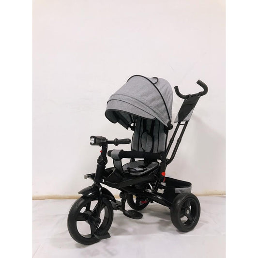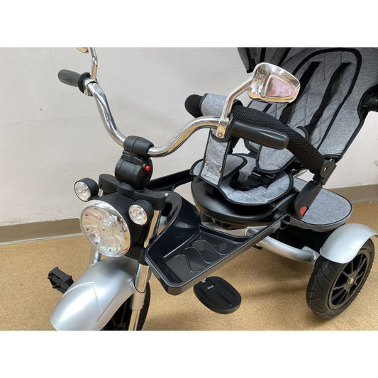 Tricicleta pentru Copii, Fara Pedale, Sistem Iluminare, Sistem Antirasturnare, Structura Metalica, Roti Silentioaose, Varsta 1-6 Ani, Gri