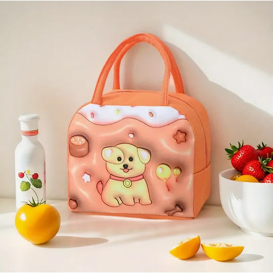 🐶 Geantă Frigorifică Copii MaisonElise, Model Cățeluș Maro 3D, 23x13x19 cm, Termoizolată, Pânză Oxford, Prânz & Picnic, Portabilă pentru Grădiniță și Școală