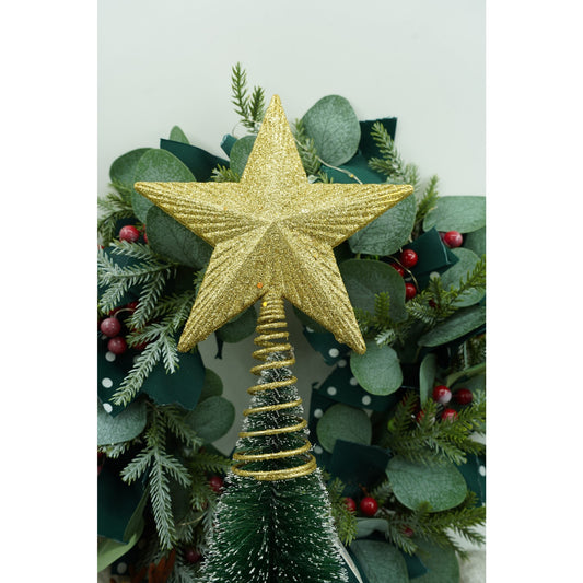 Vârf decorativ de brad , auriu in forma de stea, 21cm