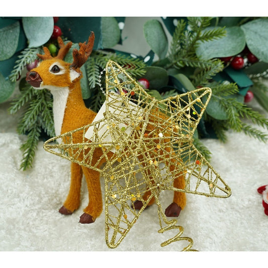 Vârf decorativ brad auriu in forma de stea 15 x 15 cm