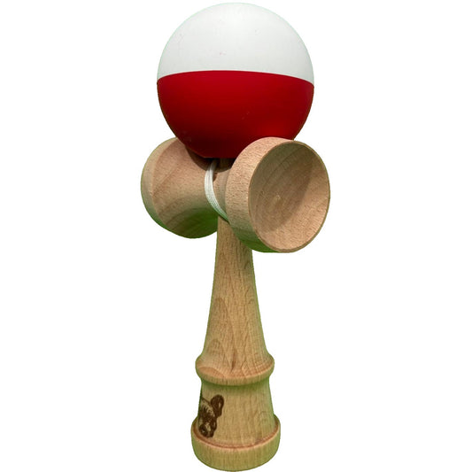Jucărie KENDAMA Rege din Lemn, 18 cm Model Roșu-Alb