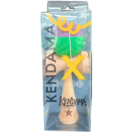 Jucărie KENDAMA din Lemn, 18 cm Model Gradient Galben-Albastru-Verde