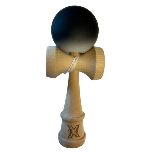 Jucărie KENDAMA din Lemn, 18 cm Gradient Alb-Nreu (Bila Cauciuc)
