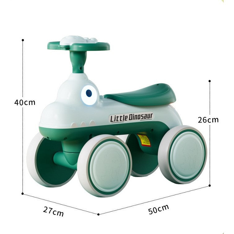 Bicicleta Pentru Copii, Fara Pedale, Cu Patru Roti, Din Plastic Rezistent, Fara BPA, Cu Muzica Si Lumini, Model Dinozaur, 50x27x40 Cm, Verde