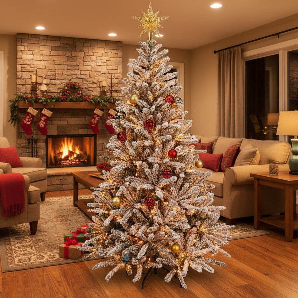BRAD ARTIFICIAL DE CRACIUN, FLIPPY, 1.8 M INALTIME, VERDE, PULVERIZAT ALB-TIP ZAPADA, DIAMETRU INFERIOR 110 CM, INTERIOR/ EXTERIOR