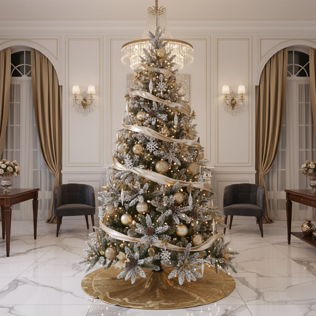 BRAD ARTIFICIAL BOGAT DE CRACIUN, 2.10 M INALTIME, VERDE, PULVERIZAT ALB-TIP ZAPADA, INTERIOR/ EXTERIOR, 1266 RAMURI
