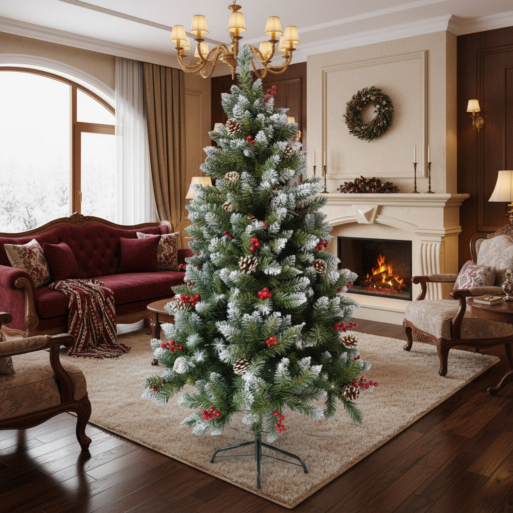 Ghirlanda de Crăciun model imperial, 270cm, Conuri, Merișoare si Vârfuri ninse