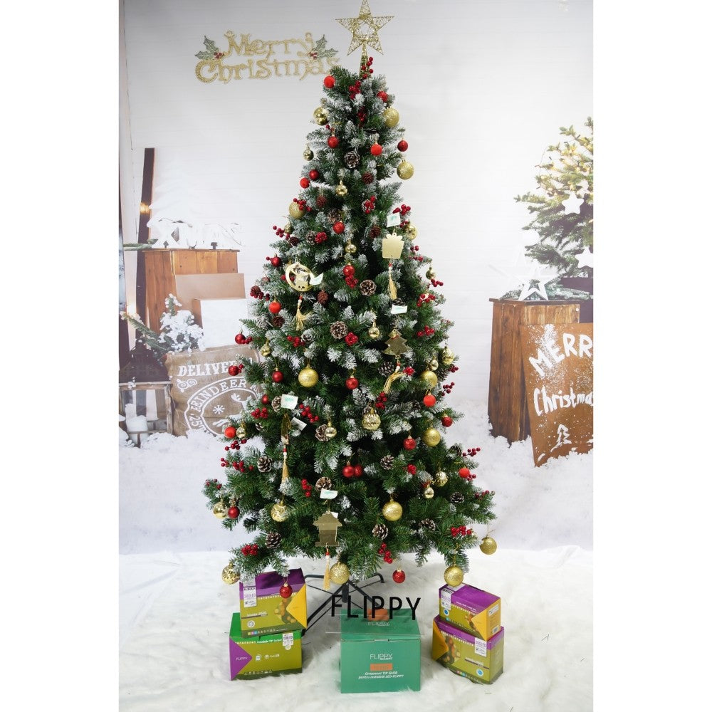 Brad artificial nins, decorat cu conuri de pin , înălțime 180cm, diametru 95cm , 319 ramuri, suport metalic inclus