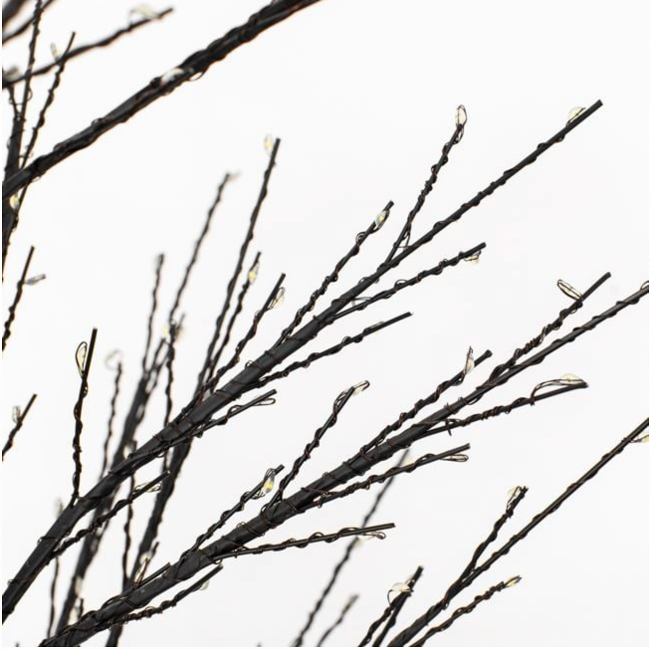 Brad de Craciun negru, cu crengute subtiri iluminate de 600 LED-uri si 8 programe de lumini. Dispune de baza din lemn si asamblare usoara. Functioneaza la curent (3.6W - 24V) si are cablu de 5 metri. Potrivit si pentru exterior, cu conditia sa fie protejat corespunzator impotriva conditiilor meteo nefavorabile (ploaie, zapada, vant).