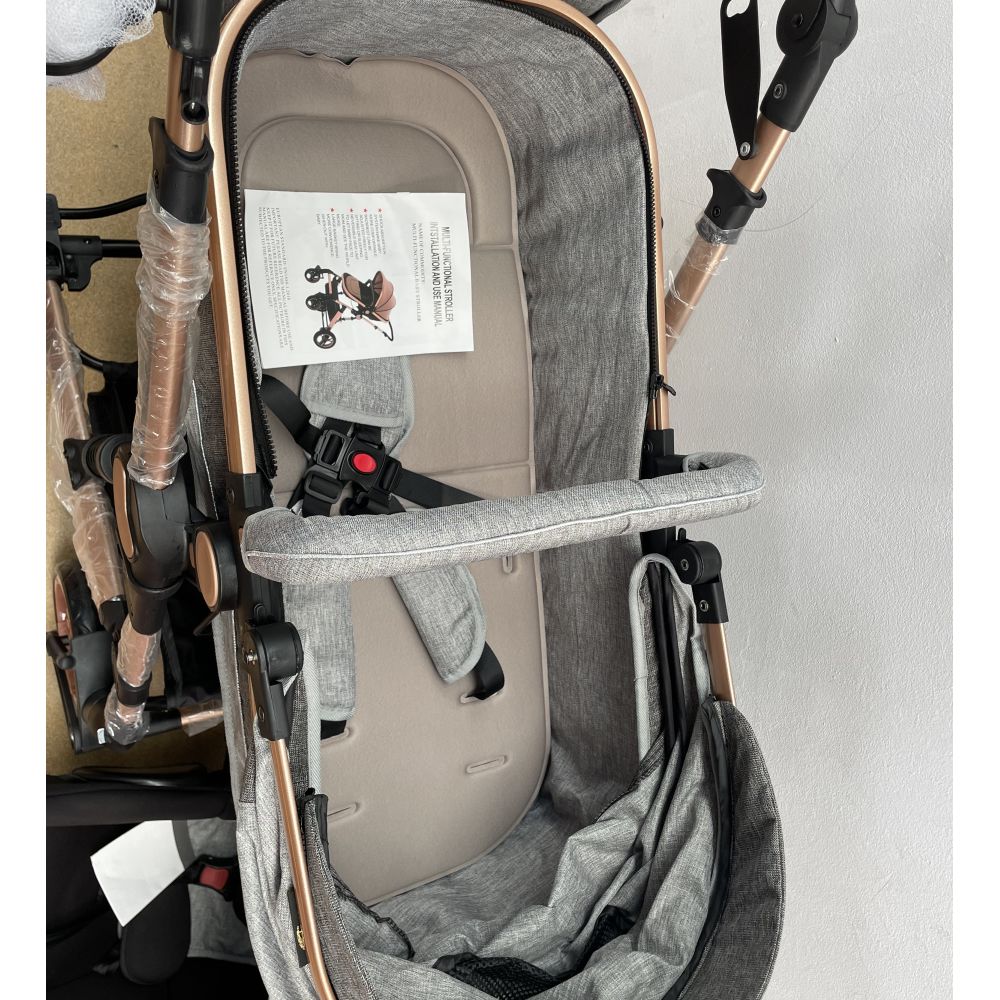 Carucioru 3in1 cu landou transformabil in parte spor, 0-36 luni, Gri, Geanta si Scoica Incluse
