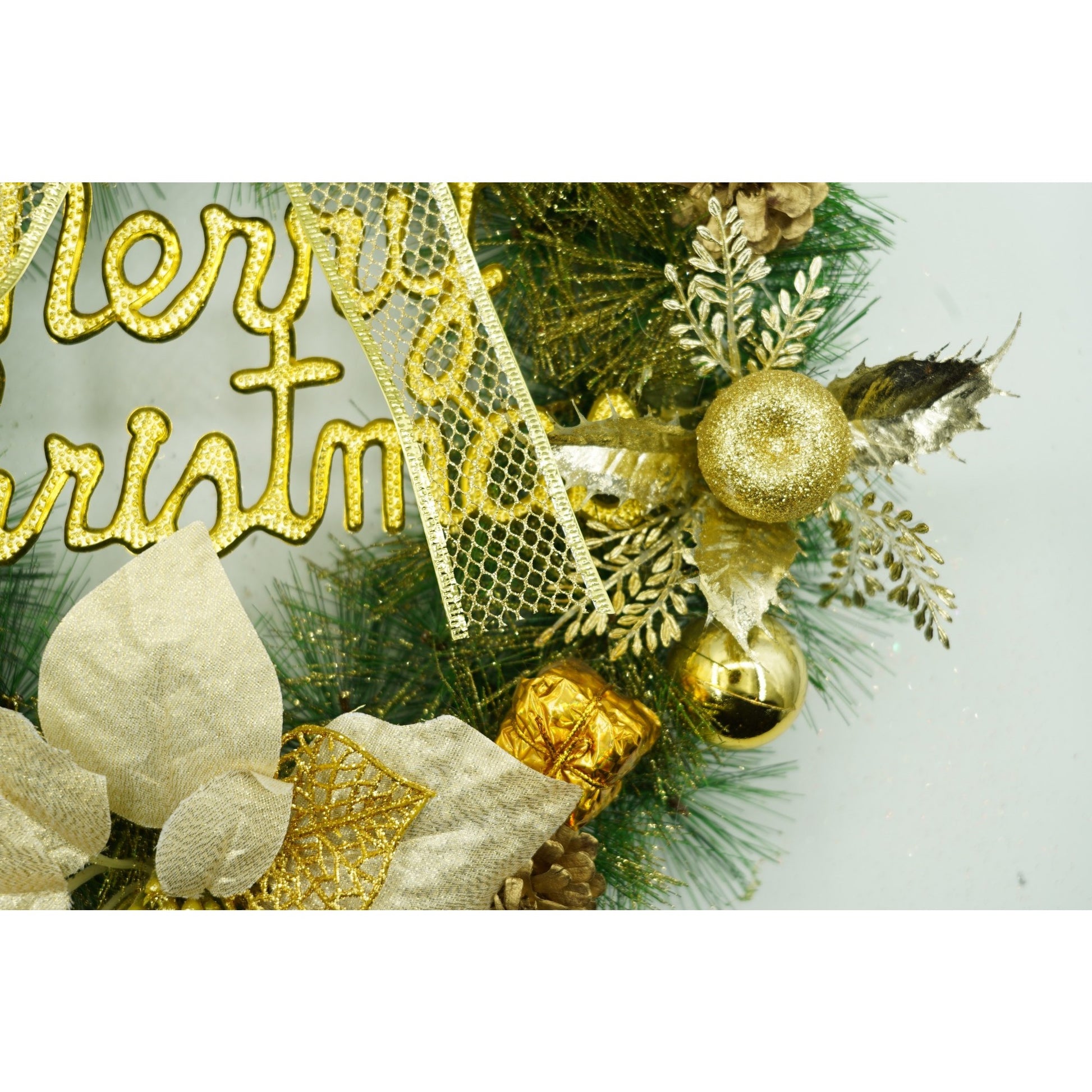 CORONITA DE CRACIUN PENTRU USA, VERDE-AURIU, 40 CM, PVC, ARTIFICIALA, DECORATA,