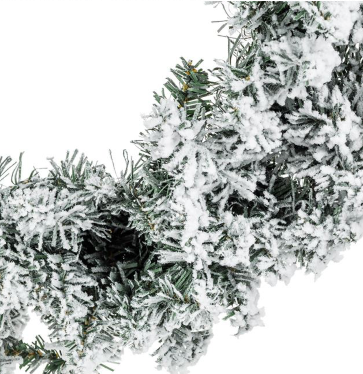 Coronita decorativa de Craciun cu 120 de ramuri verzi ninse. Decorati cu globuri, strass, glitter sau ornamente candy, ramuri, flori si luminite de Craciun. Suspendati-o pe usa sau pe perete, in interiorul sau in exteriorul casei si decorati pentru sarbatori!