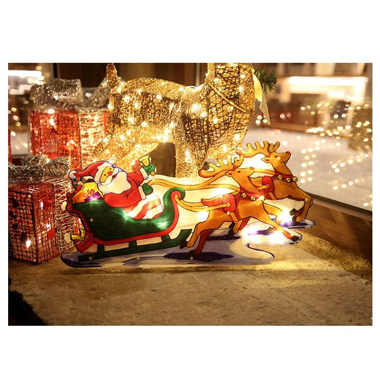 Decorațiune de Crăciun pentru Fereastra , model Sanie cu Reni, LED,