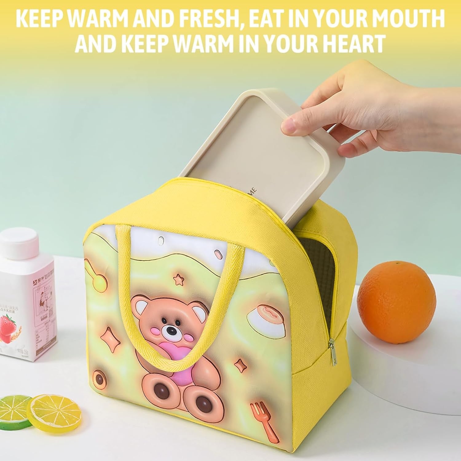 🧸 Geantă Frigorifică Copii MaisonElise, 3D Ursuleț, Galben, Prânz/Excursii, 23x13x19 cm, Pânză Oxford Izolată Termic