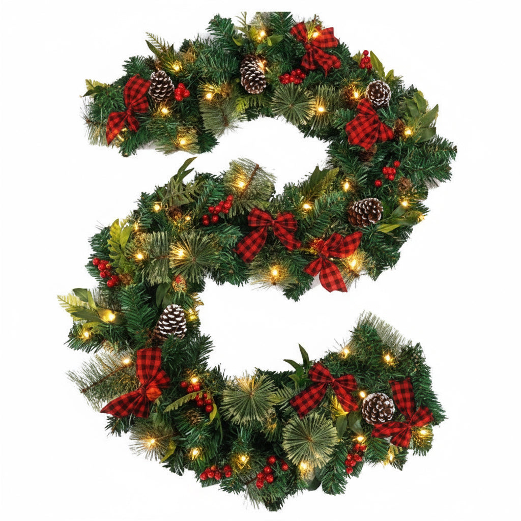 Ghirlanda de Crăciun Imperială, decorată cu Fundițe conuri, merișoar si instalație LED, 270cm