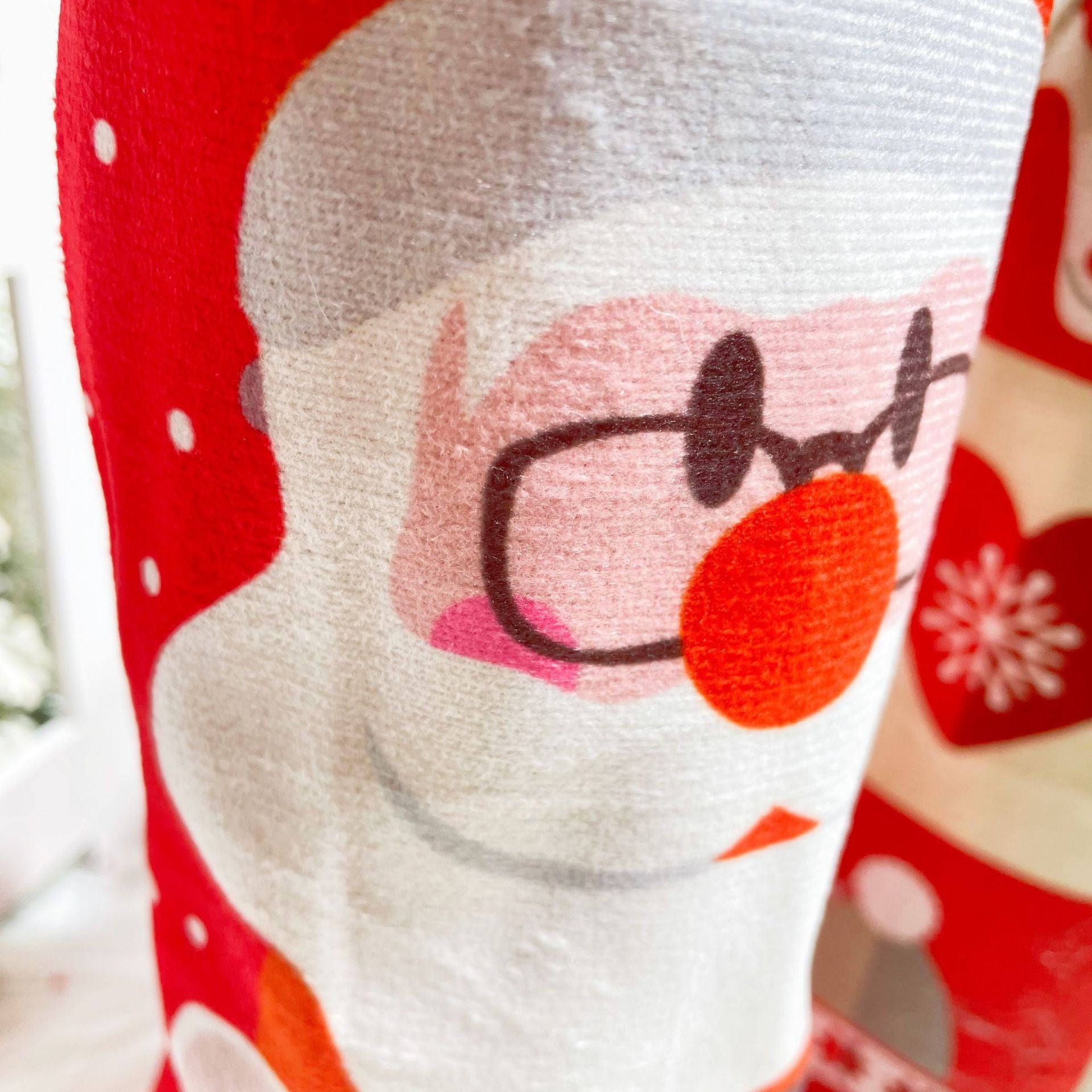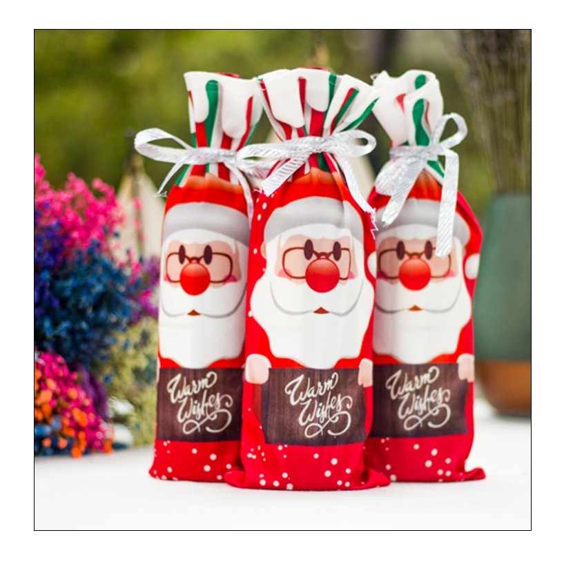 Design festiv cu temă Moș Crăciun: Această husă prezintă un design adorabil cu temă Moș Crăciun, aducând o atmosferă plină de căldură și bucurie în timpul sezonului sărbătorilor. Este o modalitate minunată de a accentua frumusețea cadourilor sau a sticlelor de vin oferite în perioada Crăciunului.
