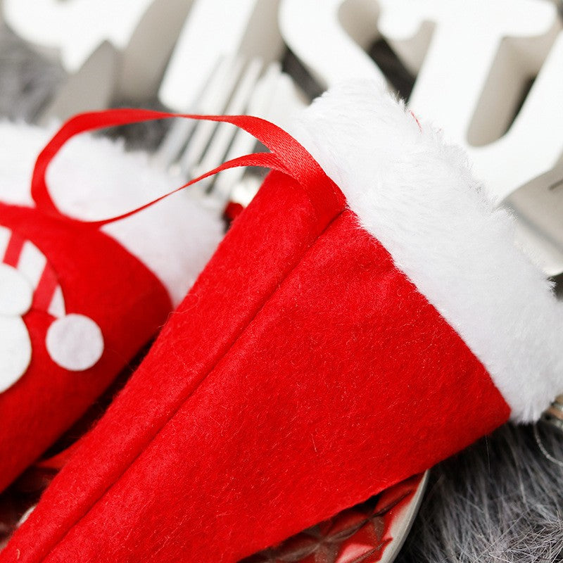 Husa Decorativă Festivă pentru 3 Tacâmuri, model Căciuliță Moș Crăciun 19x10 cm, Roșu