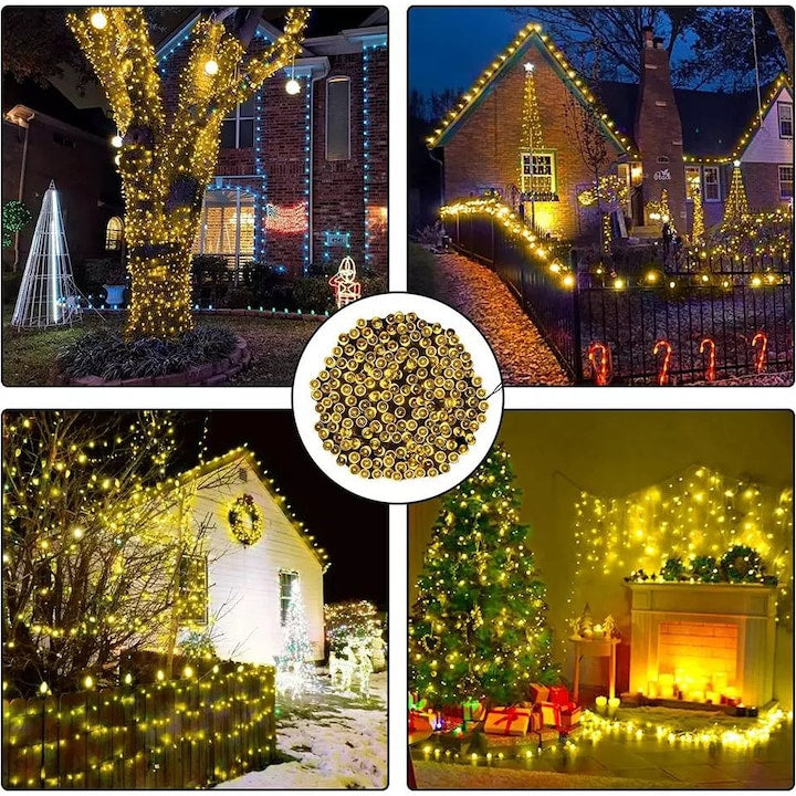 Instalație de Crăciun Solara, 12 metri, 100LED-uri, 8 jocuri de lumini, Lumina Alb Cald