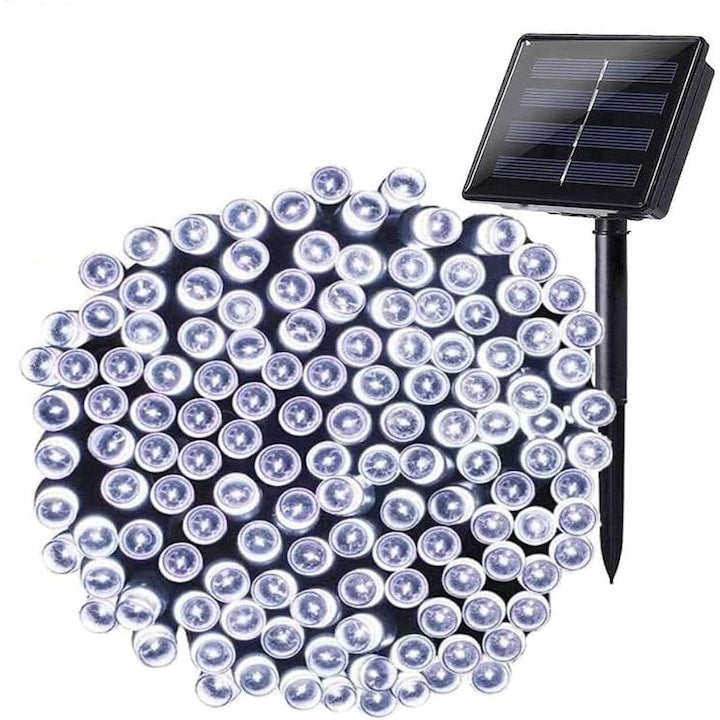Instalație de Crăciun Solara, 20 metri, 200LED-uri, Lumina Alb Rece