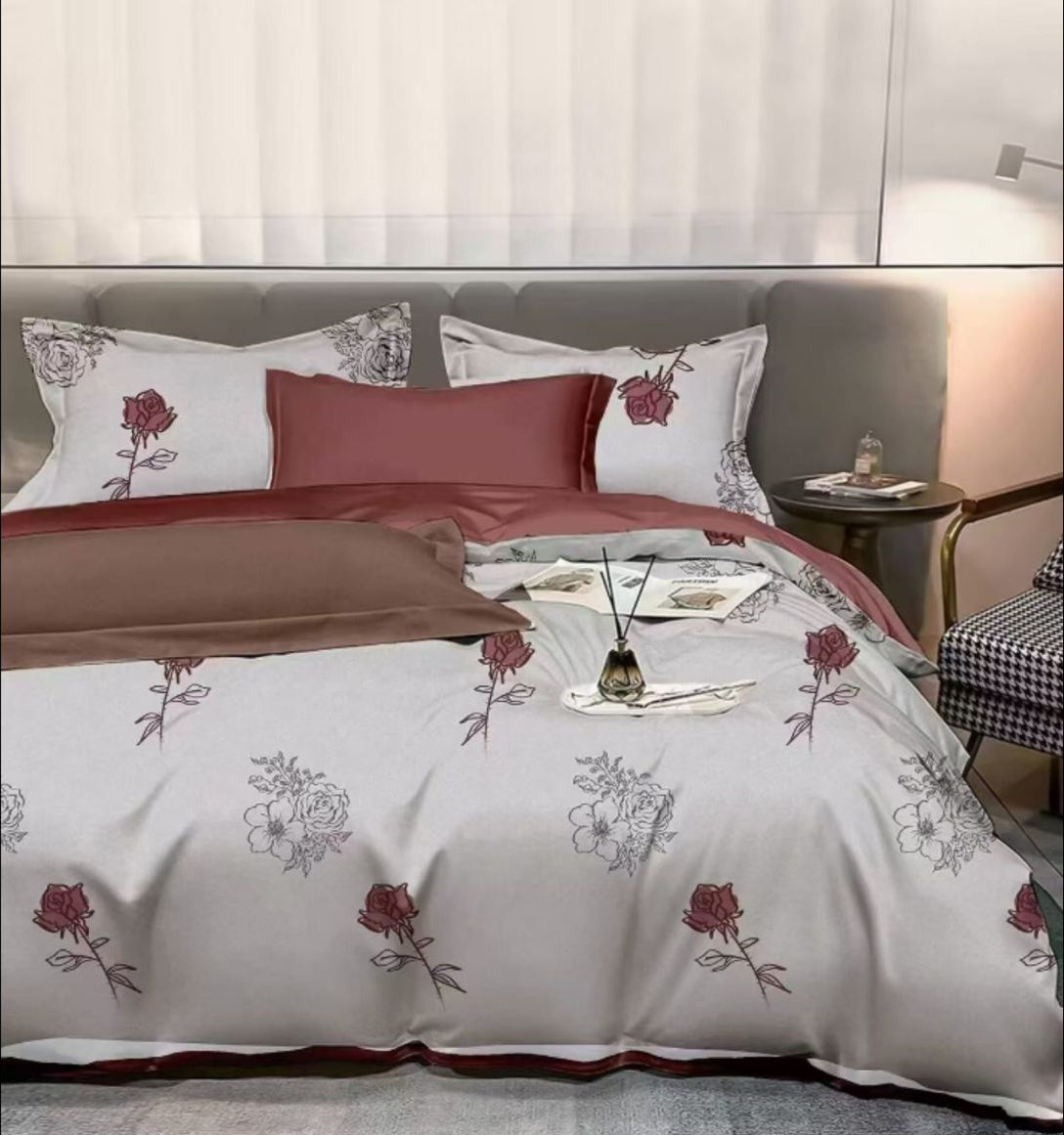 Lenjerie de pat, 6 piese, din bumbac satinat, cu elastic