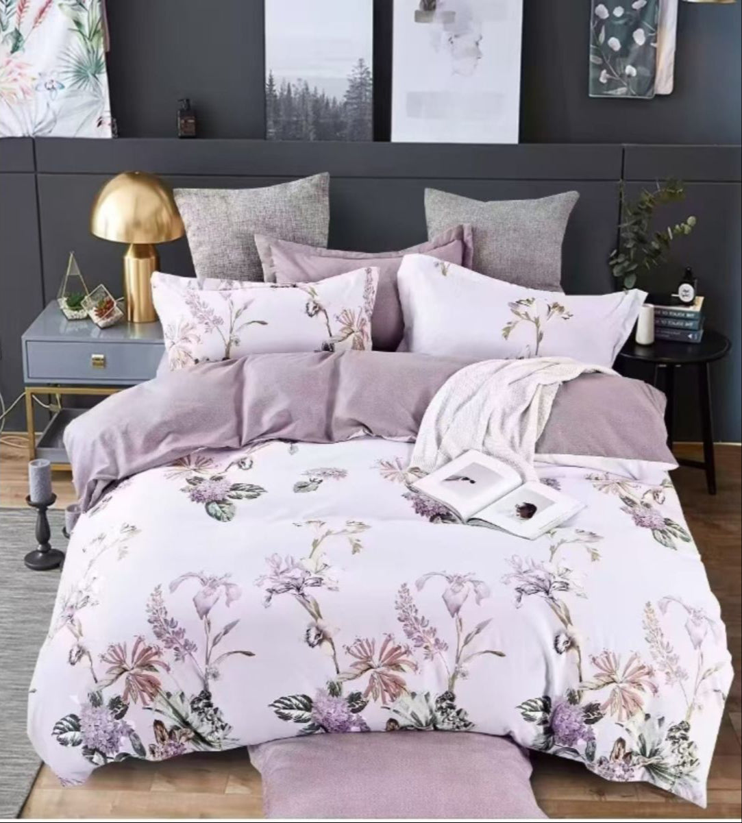 Lenjerie de pat, 6 piese, din bumbac satinat, cu model imprimat