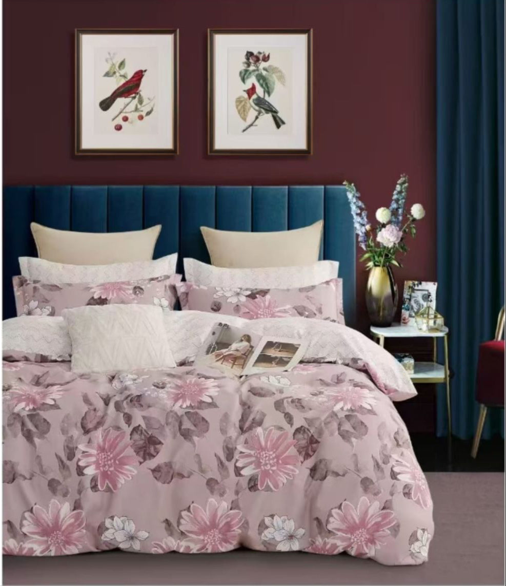 - Tip: Set de lenjerie de pat de 6 piese, format dintr-un cearșaf de pilotă, un cearșaf de pat și patru fețe de pernă.