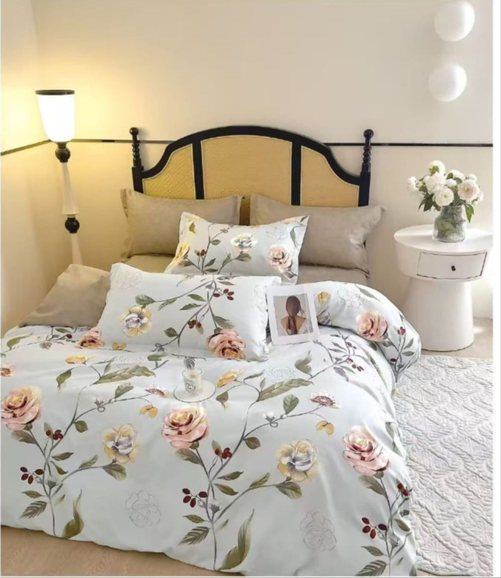 - Tip: Set de lenjerie de pat de 6 piese, format dintr-un cearșaf de pilotă, un cearșaf de pat și patru fețe de pernă.