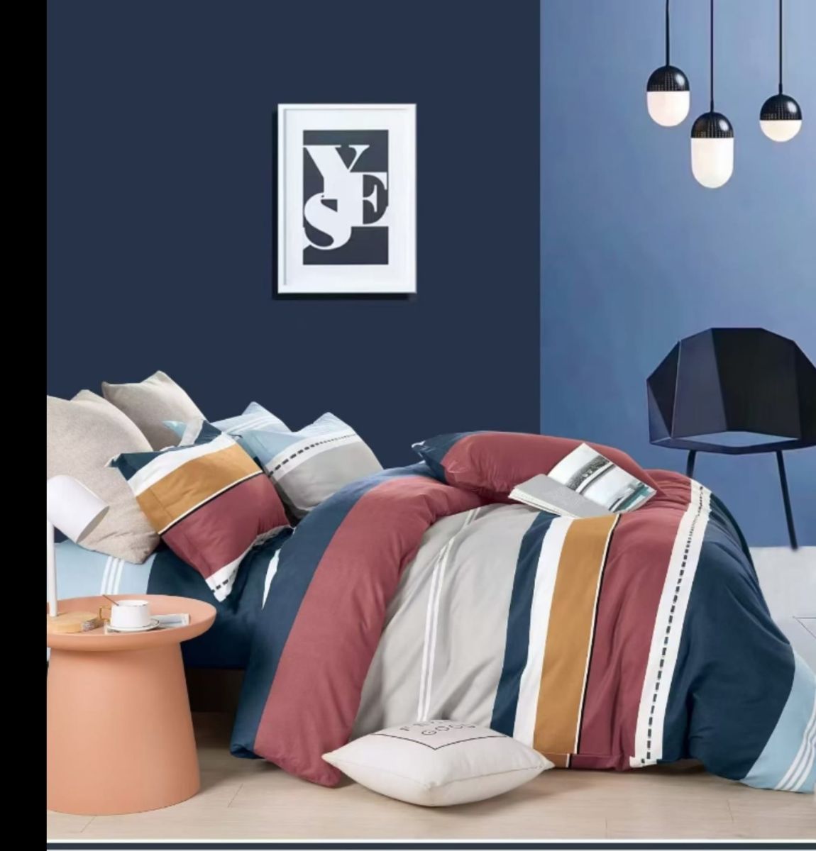- Tip: Set de lenjerie de pat de 6 piese, format dintr-un cearșaf de pilotă, un cearșaf de pat și patru fețe de pernă.
