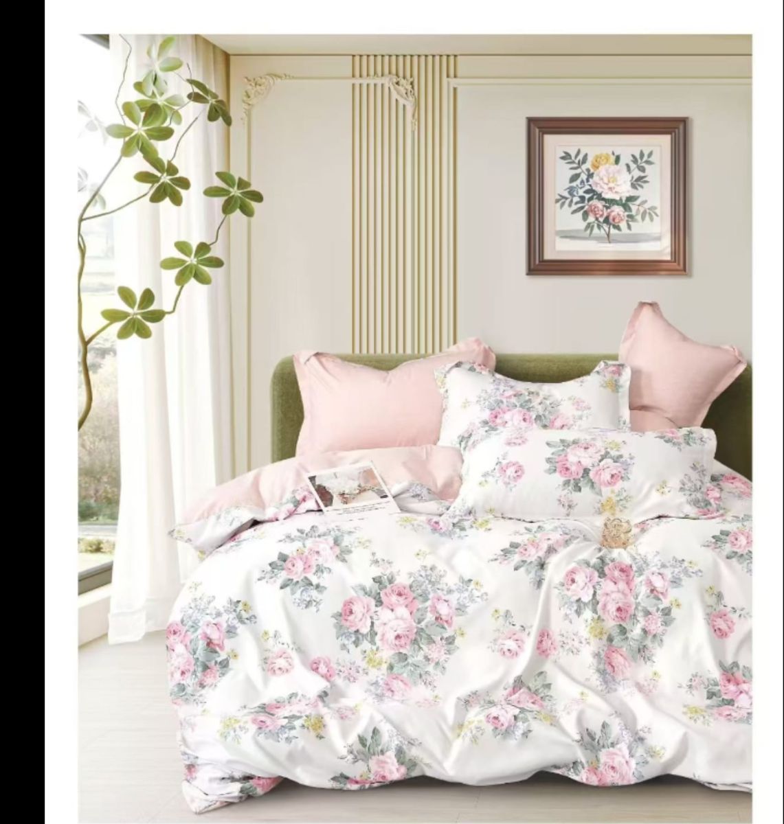 Lenjerie de pat, 6 piese, din bumbac satinat, cu model imprimat