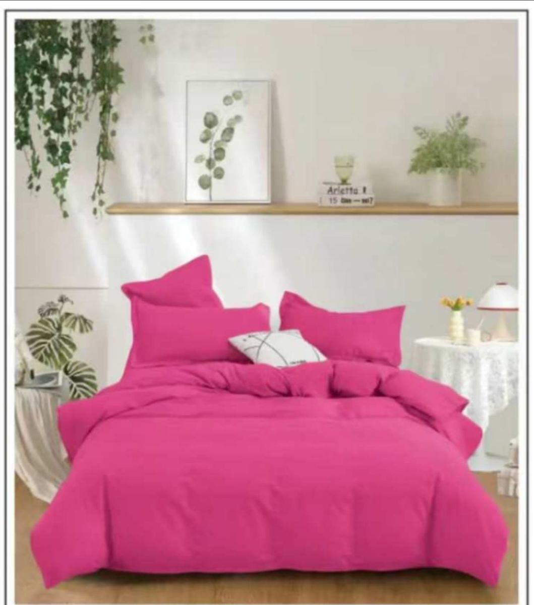 Lenjerie de pat, 6 piese, uni, din finet - Roz