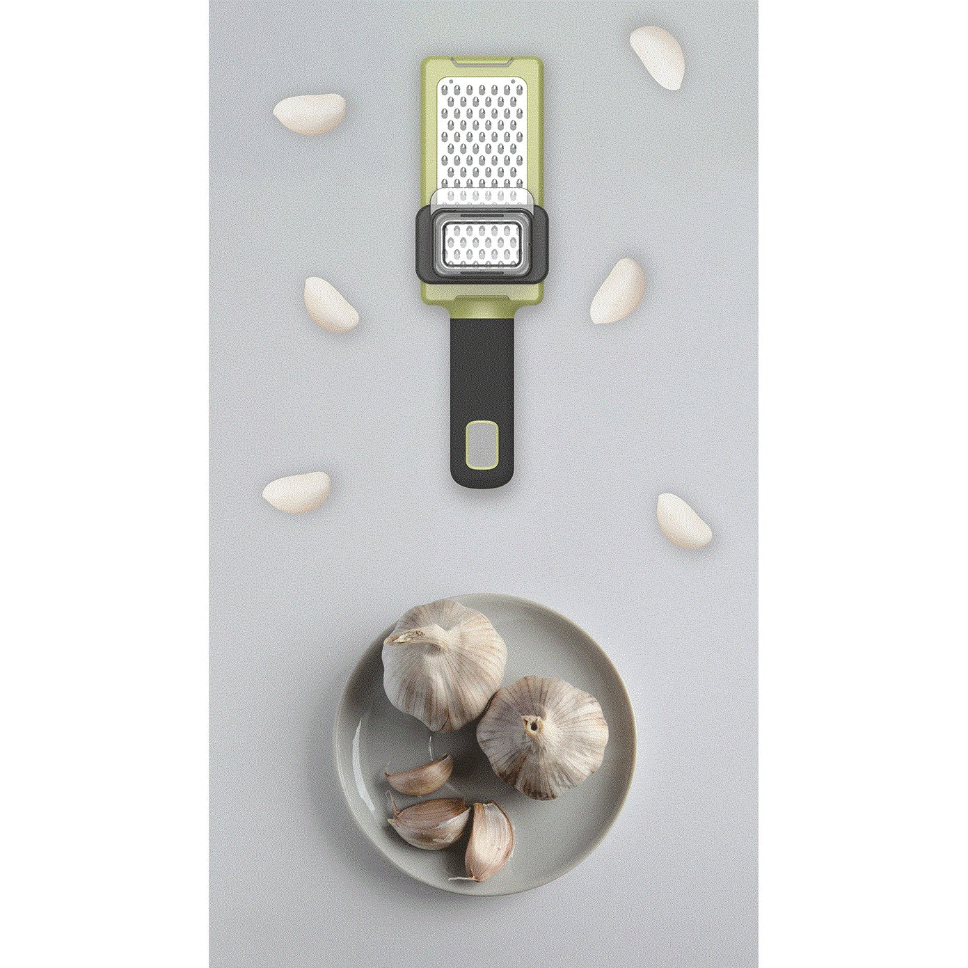 Răzătoare Multifuncțională, pentru Usturoi, Brânză, Cașcaval, 20.3 x 5.8 x 3.3 cm, Verde/Gri