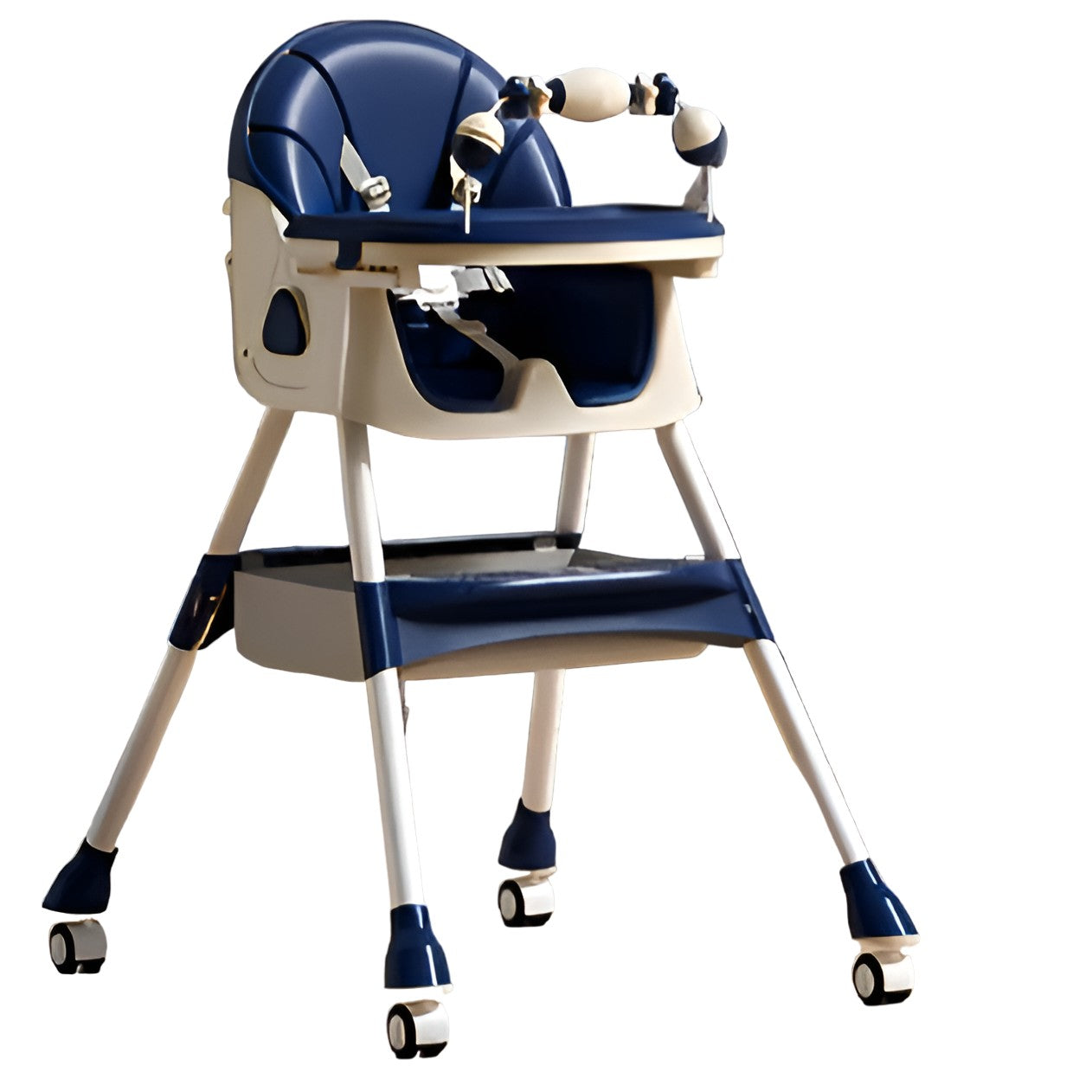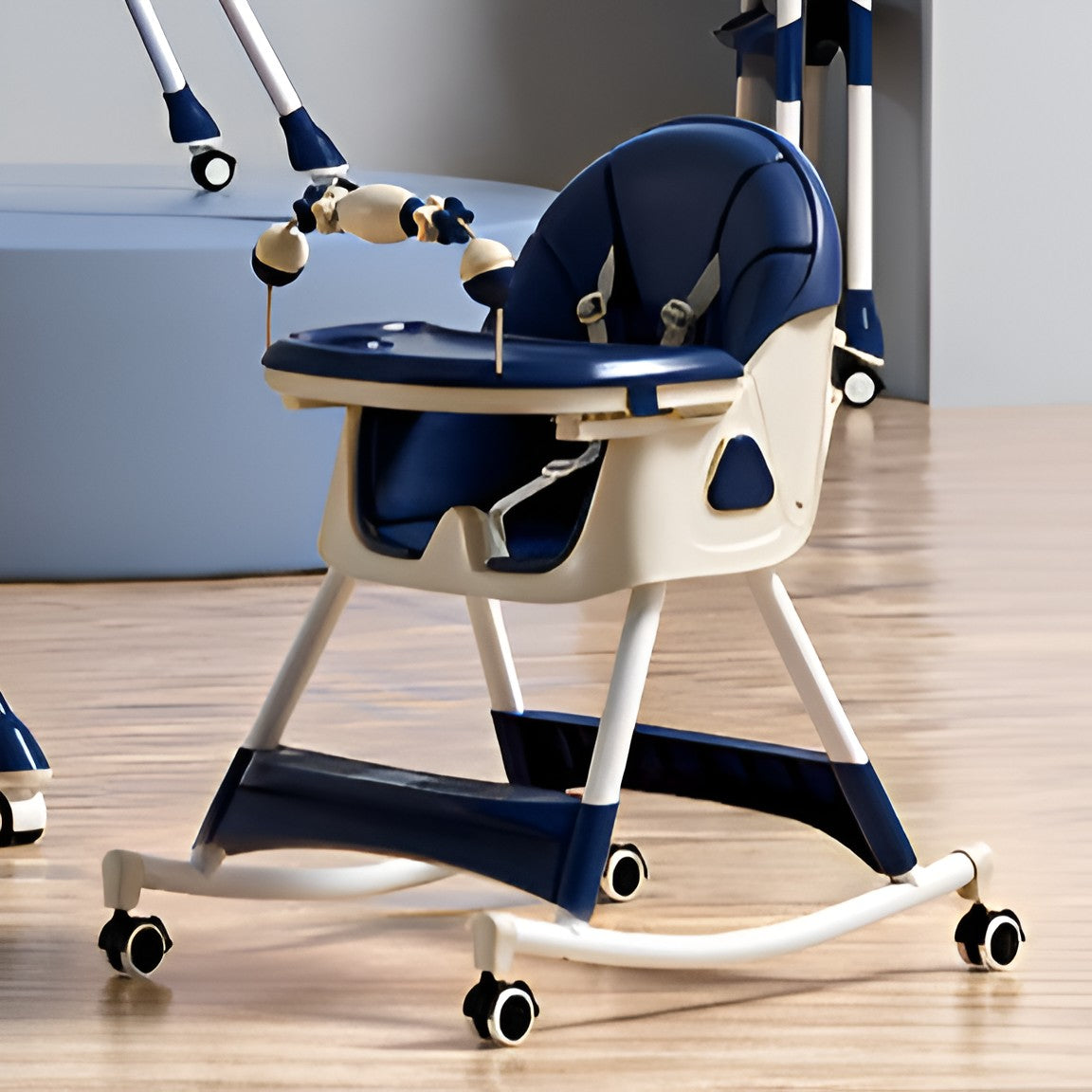 Scaun de Masa pentru Bebelusi si Copii, 2 Tavite si Husa Detasabile, Multifuncțional, Stabil, Centura de Siguranta, Spatar Reglabil Moale, Balansoar, Cos de Depozitare, de la 6 Luni, Albastru