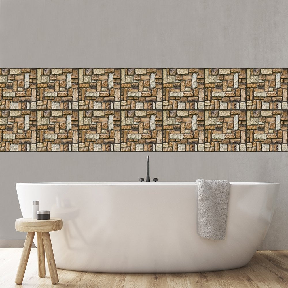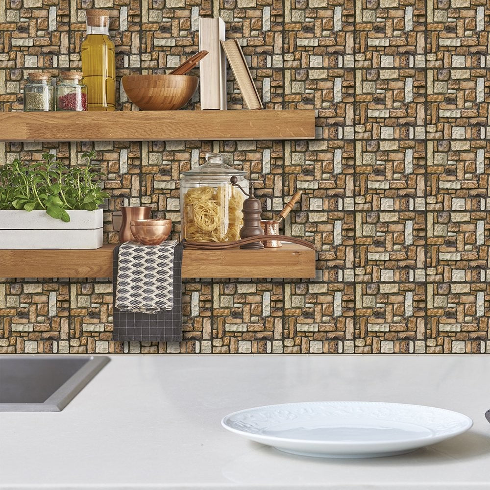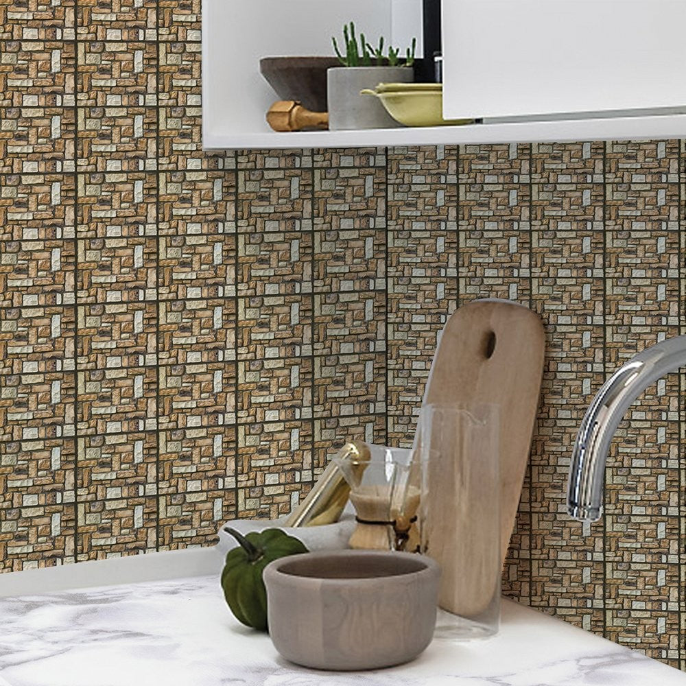 Set 10 Plăci Tapet 3D, 30 x 30 cm, din PVC, Tip Piatră, Suprafață acoperită 0.9 mp, Autoadeziv, Maro