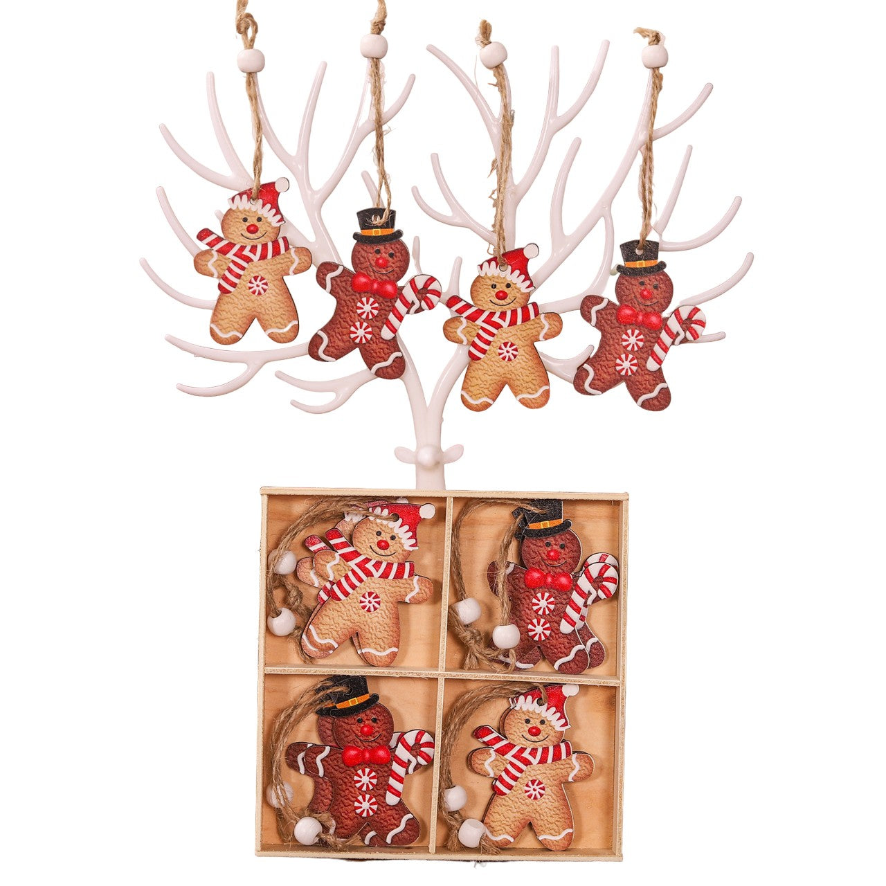 Set 12 Decorațiuni de Crăciun din Lemn - Temă Prajituri Omuleti