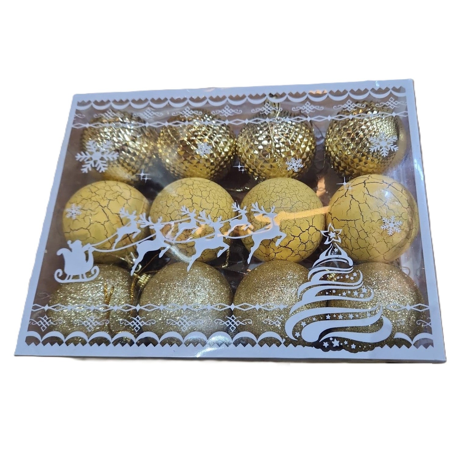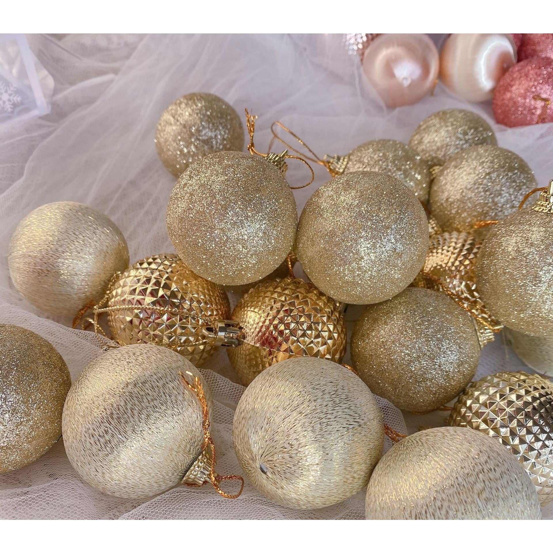Set 12 Globuri de Crăciun, model cu glitter, lucioase și mate, auriu