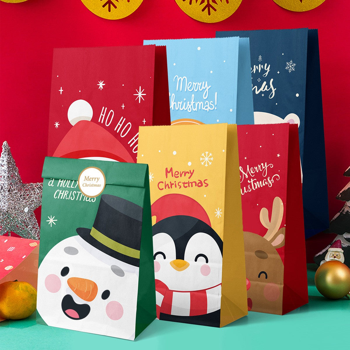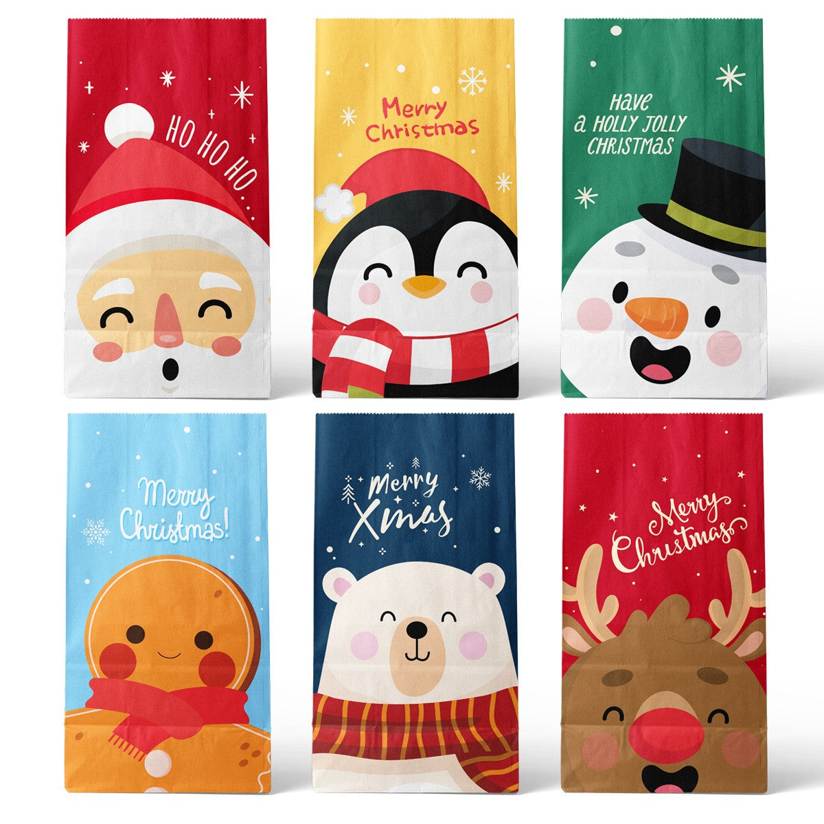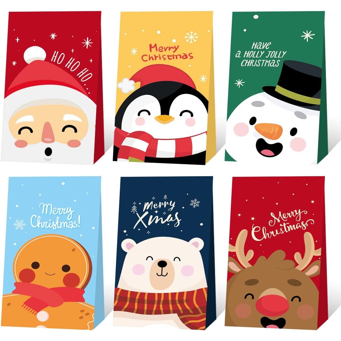 Set 12 Pungi de Cadou, Tematica Crăciun, cu Personaje, 12 Stickere Incluse, 24 x 13 x 8 cm, din Hartie, Multicolor