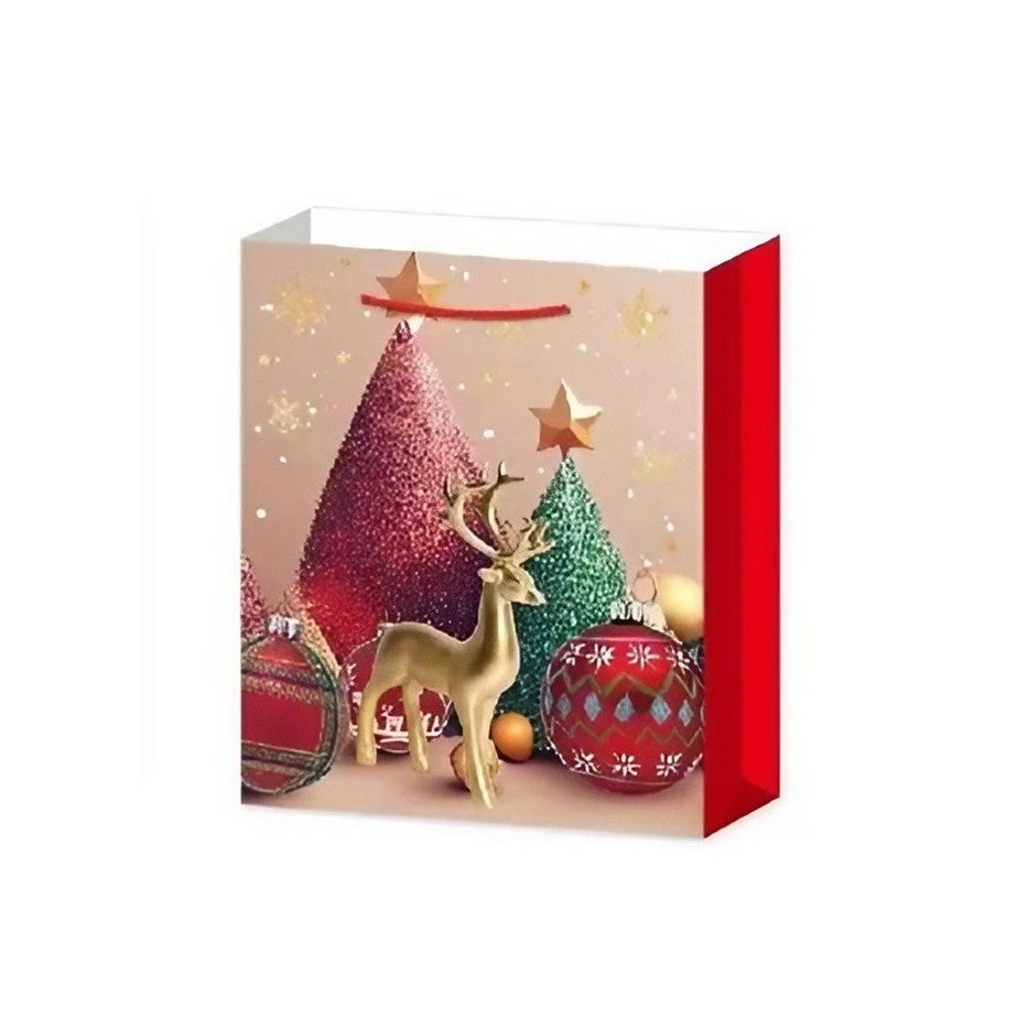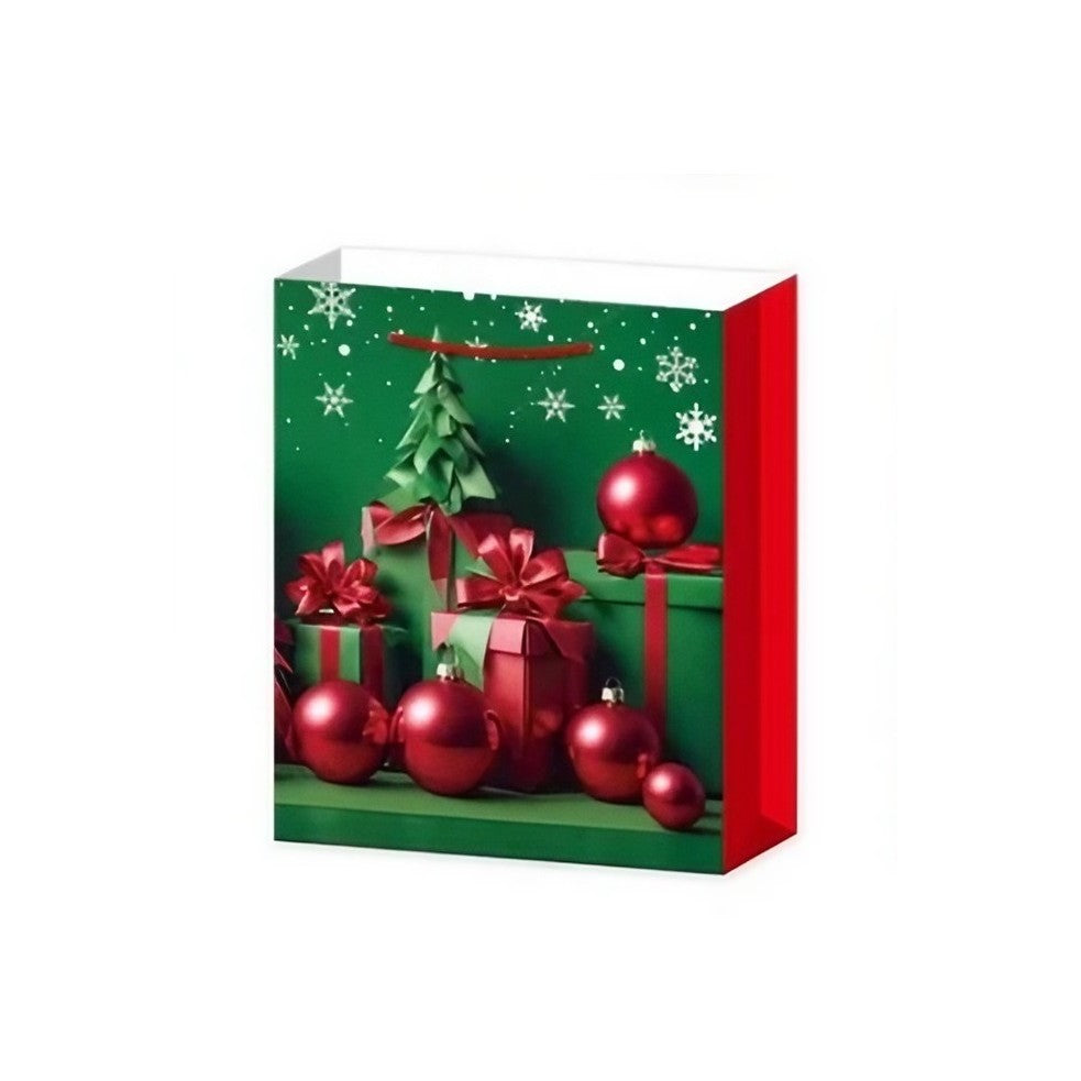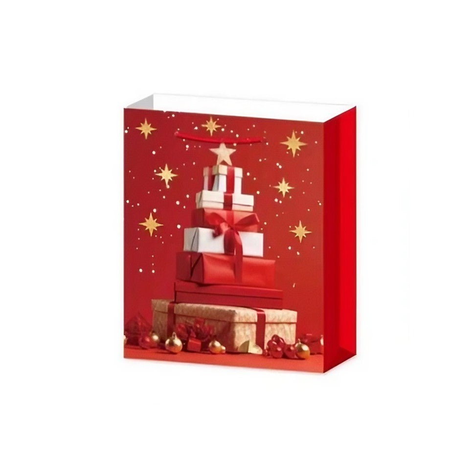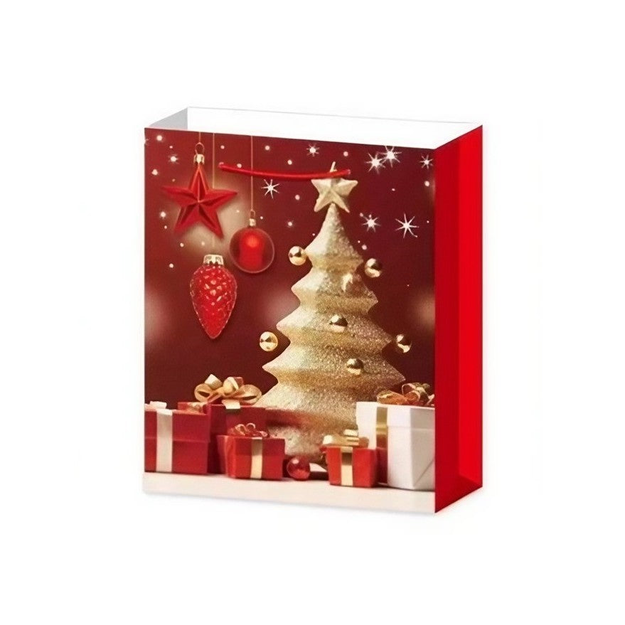 Set 6 pungi cadou, Imprimeu tematica Brad de Crăciun, 18.5x22.5x8.5cm
