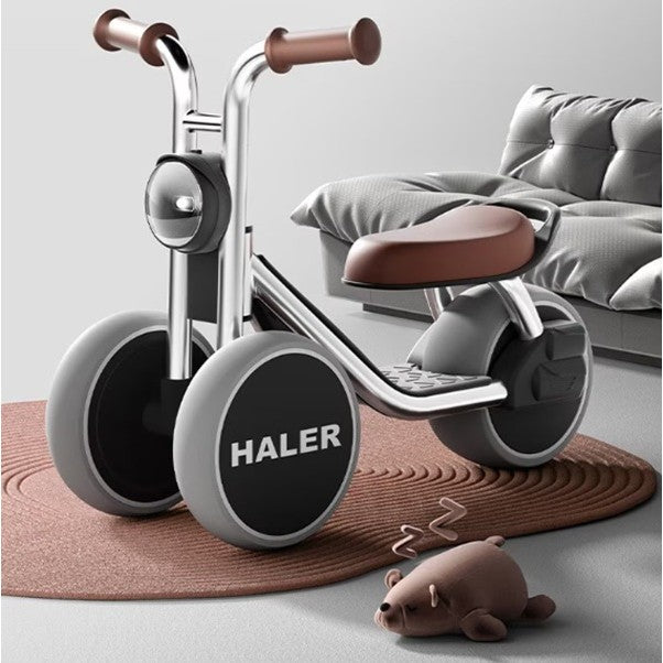 Tricicleta pentru Copii, Fara Pedale, Sistem Iluminare, Sistem Antirasturnare, Structura Metalica, Roti Silentioaose, Varsta 1-6 Ani, Gri