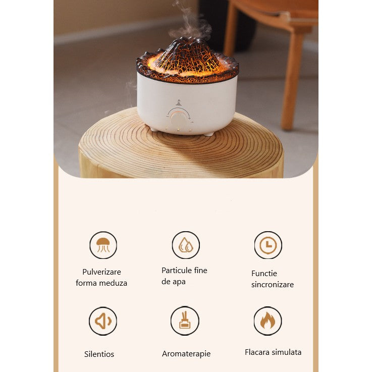 Umidificator de tip vulcan , cu aromaterapie si telecomanda