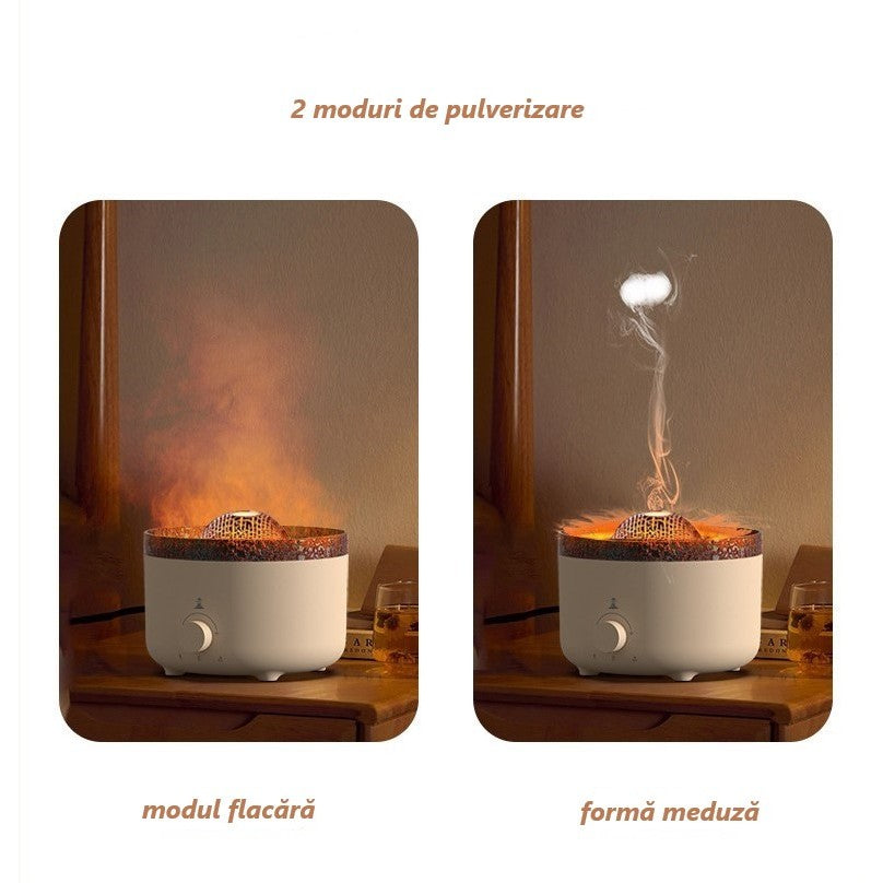 Umidificator de tip vulcan , cu aromaterapie si telecomanda